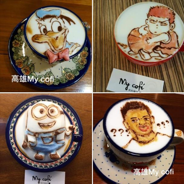 有次朋友傳來國外立體拉花圖片,點燃桂芳姊的好奇心,這一試開啟了立體拉花之路。美容科畢業的桂芳姊曾是補習班彩妝講師,昔日彩妝經驗意外成了往後My Cofi茁壯成長的養分。
