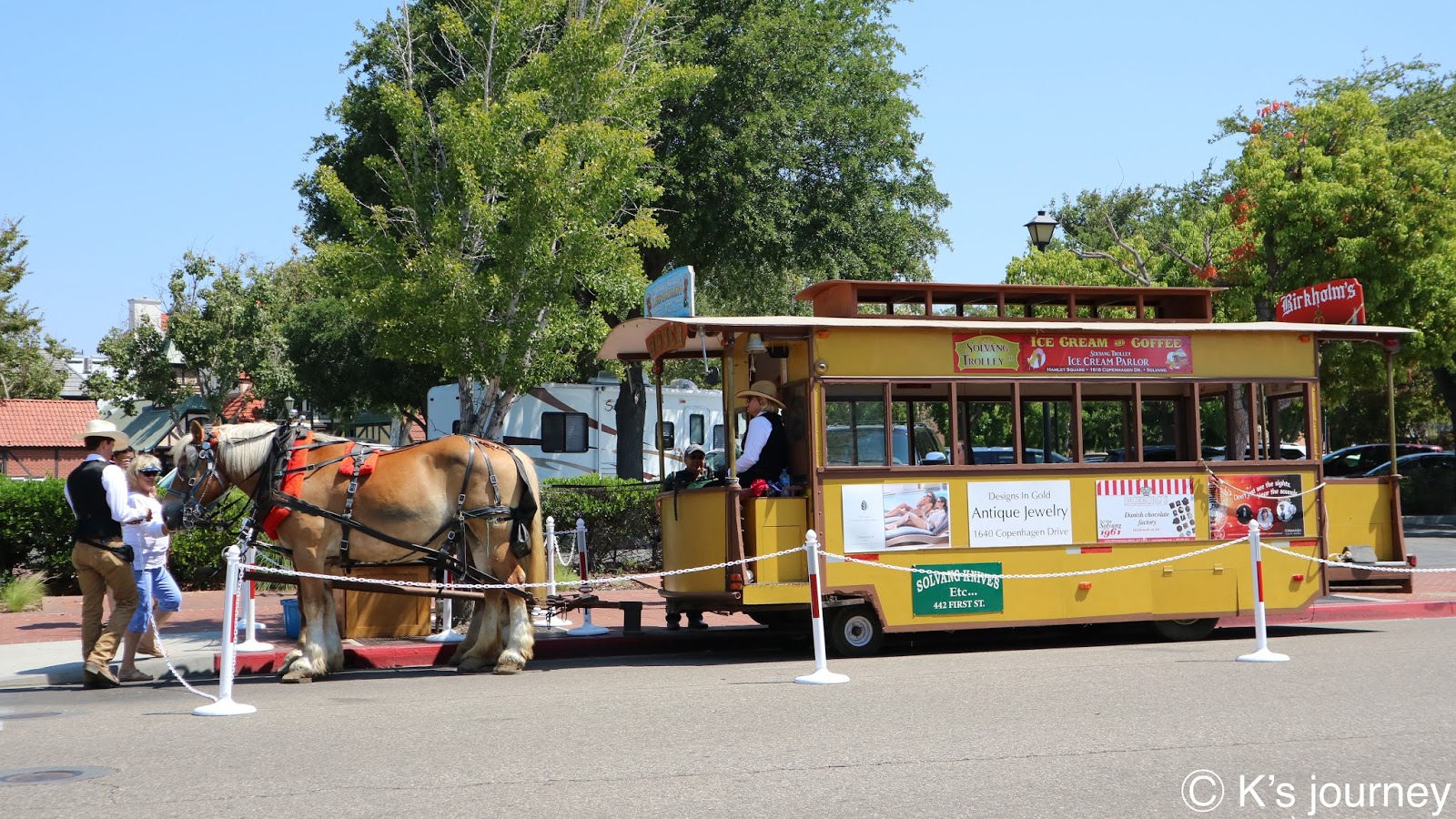 馬車緩緩駛進街區,沿途經過一整排夢幻的彩色房子,圍牆上繽紛花朵正盛開著,甜點店的麵包剛出爐,有對老夫妻坐在院子裡悠哉喝下午茶。這裡不是夢境,也不是電影場景,而是真真切切存在的童話世界,美國南加州聖塔芭芭拉(Santa Barbara)著名的北歐小鎮丹麥村(Solvang)。