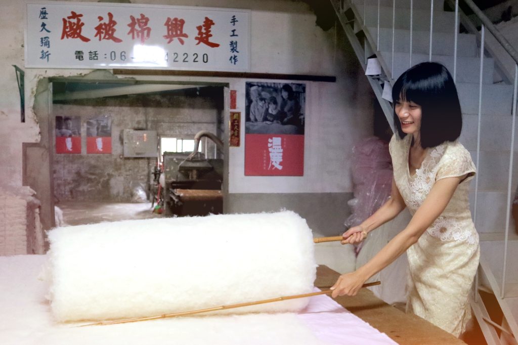 來到這邊,除了體驗手工棉被製作,最重要的是我們要支持台灣的傳統產業。忙著縫線的阿婆今年已80多歲,一針一線縫過一甲子,縫出職人精神!