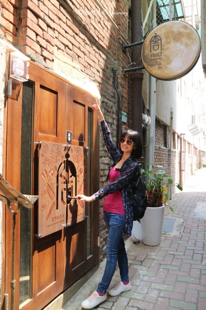 推開厚重大門,步上階梯,即可看到小鳥衣衣旗袍展示處,一旁是窖地家食堂吧台和用餐區,其中最吸睛的莫過於是電視牆了!榮登客人熱門打卡點。另外,喜歡復古感覺的朋友,外面這面斑駁紅磚牆也值得一拍!