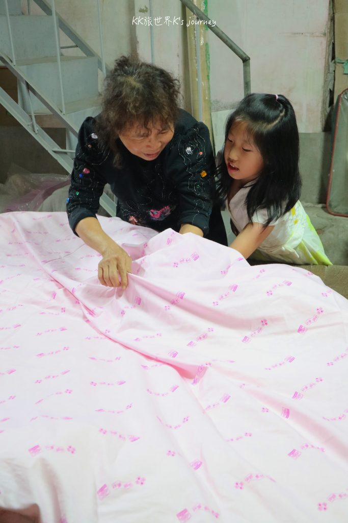 這項體驗相當適合親子同樂,當天有不少小朋友搶著捲棉花呢!鋪完棉花,確認平整後,才能套入被單,進入最後的縫線步驟,縫線又是另一項學問了,需要極大耐心。想體驗的朋友,請向店家電話預約!製作棉被的費用以斤計價,老闆說可以按客人需求製作。當日我們體驗4斤半的單人棉被價格是1600元。
