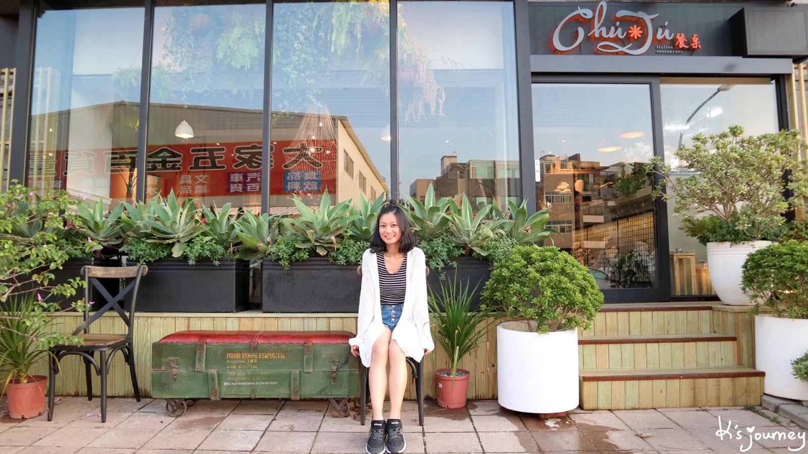 雖然我是Made in Taiwan,但雙腳既然都已經踩在洛杉磯了,就來當一天假Local吧!這個點也算是網美必拍,家具店Cisco Home Melrose的外牆。藍色條紋牆