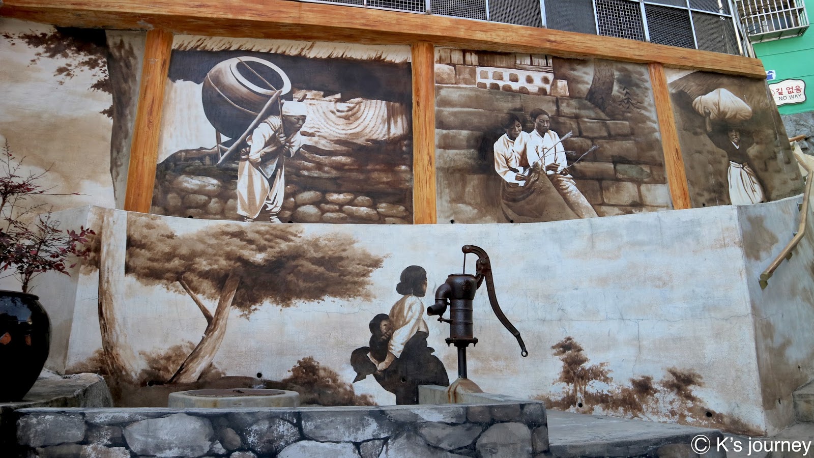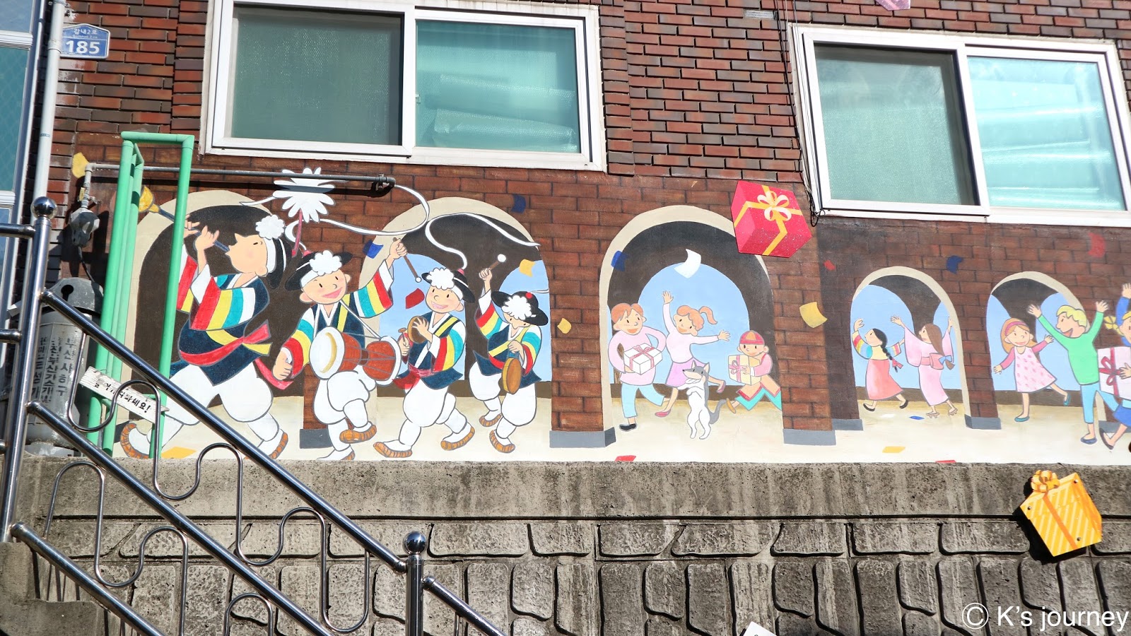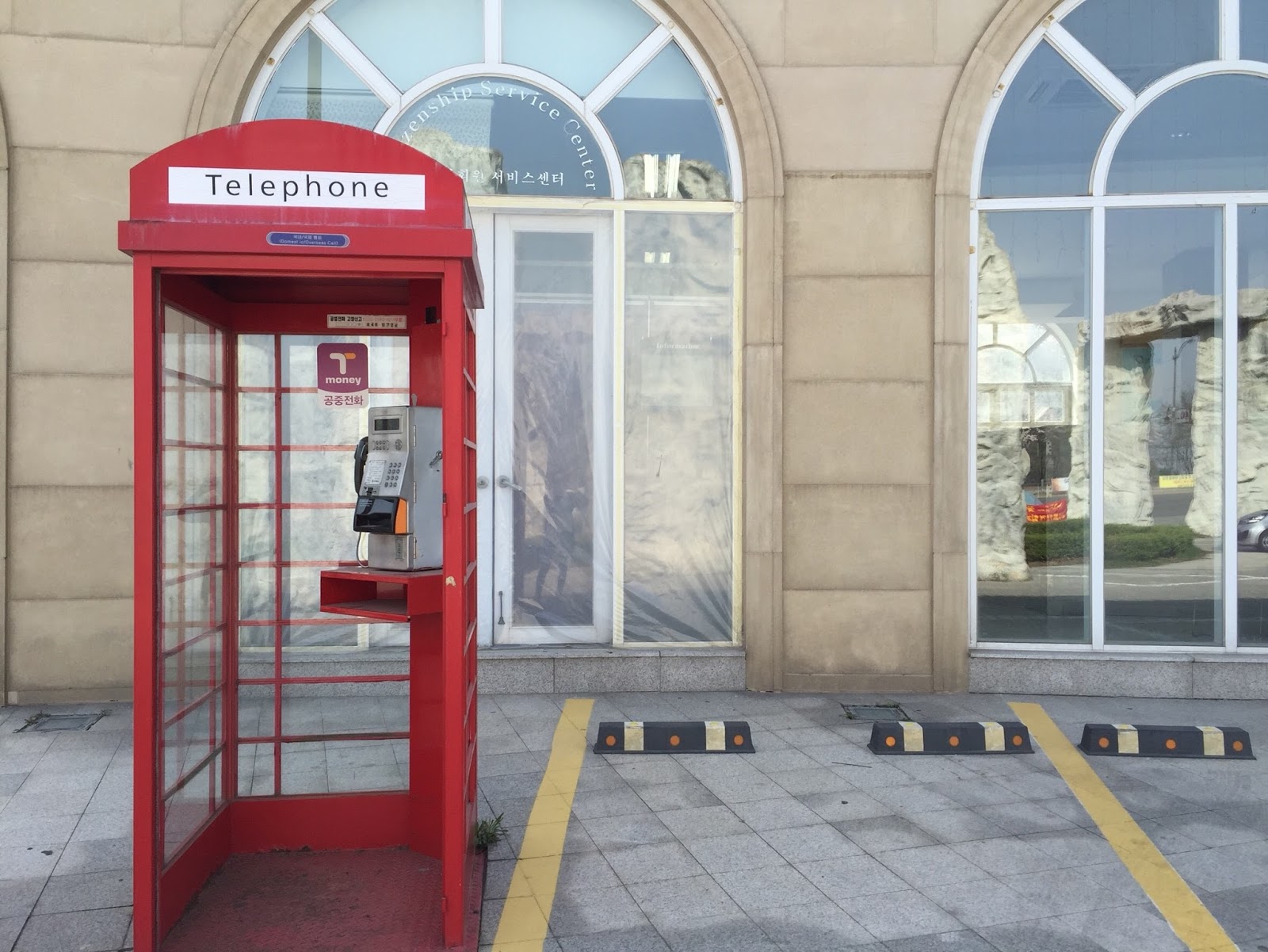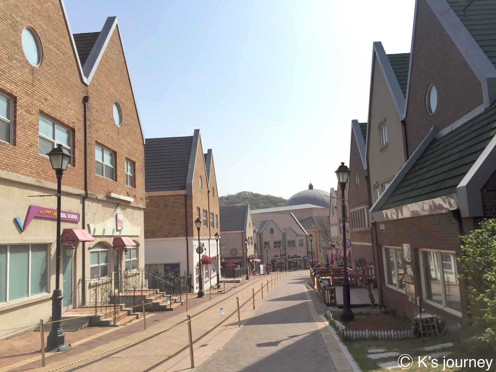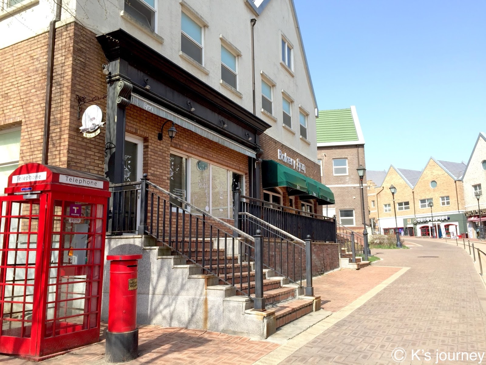 如果不說,還真以為來到歐洲呢!不然就是某個拍片現場吧!為了吸引韓國學生來這裡上課,坡州英語村除了打造100%英語環境,連建築設計也很用心,有市政廳、銀行、餐廳、咖啡廳、警察局、郵局等。每棟建築都好美,當天我們一早就到了,沒幾間店營業,但也因如此我們才能無壓力地好好拍照!