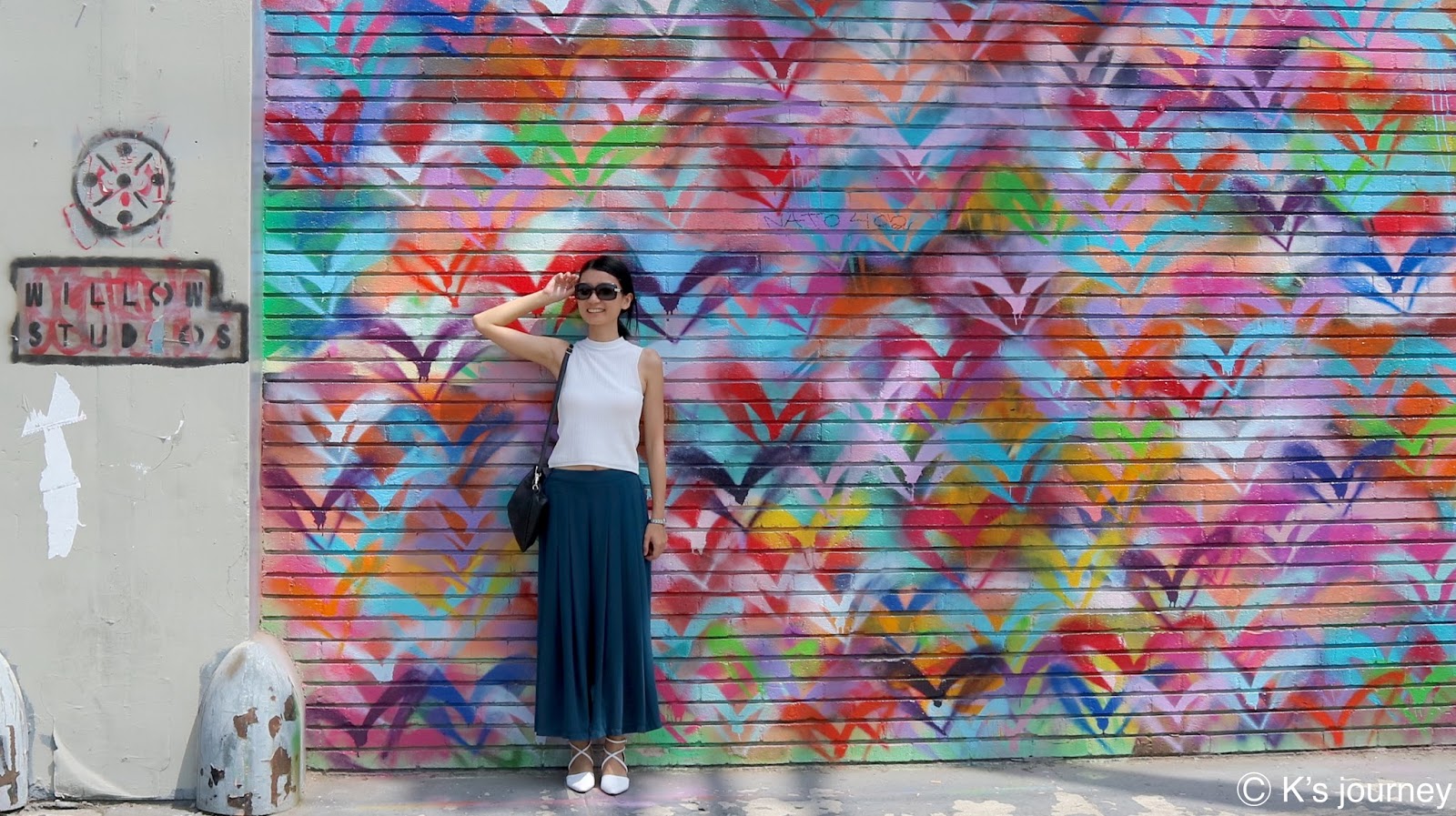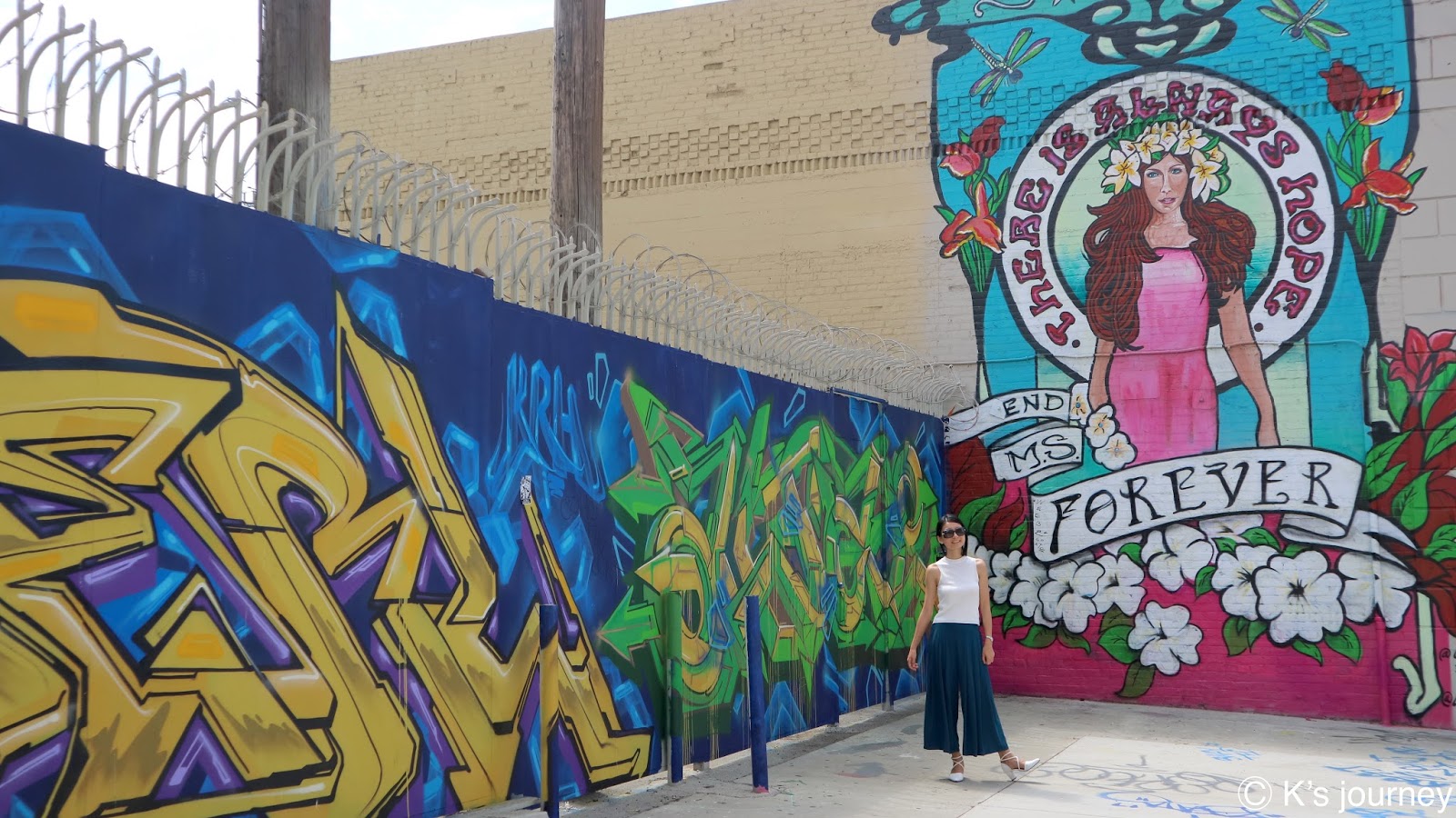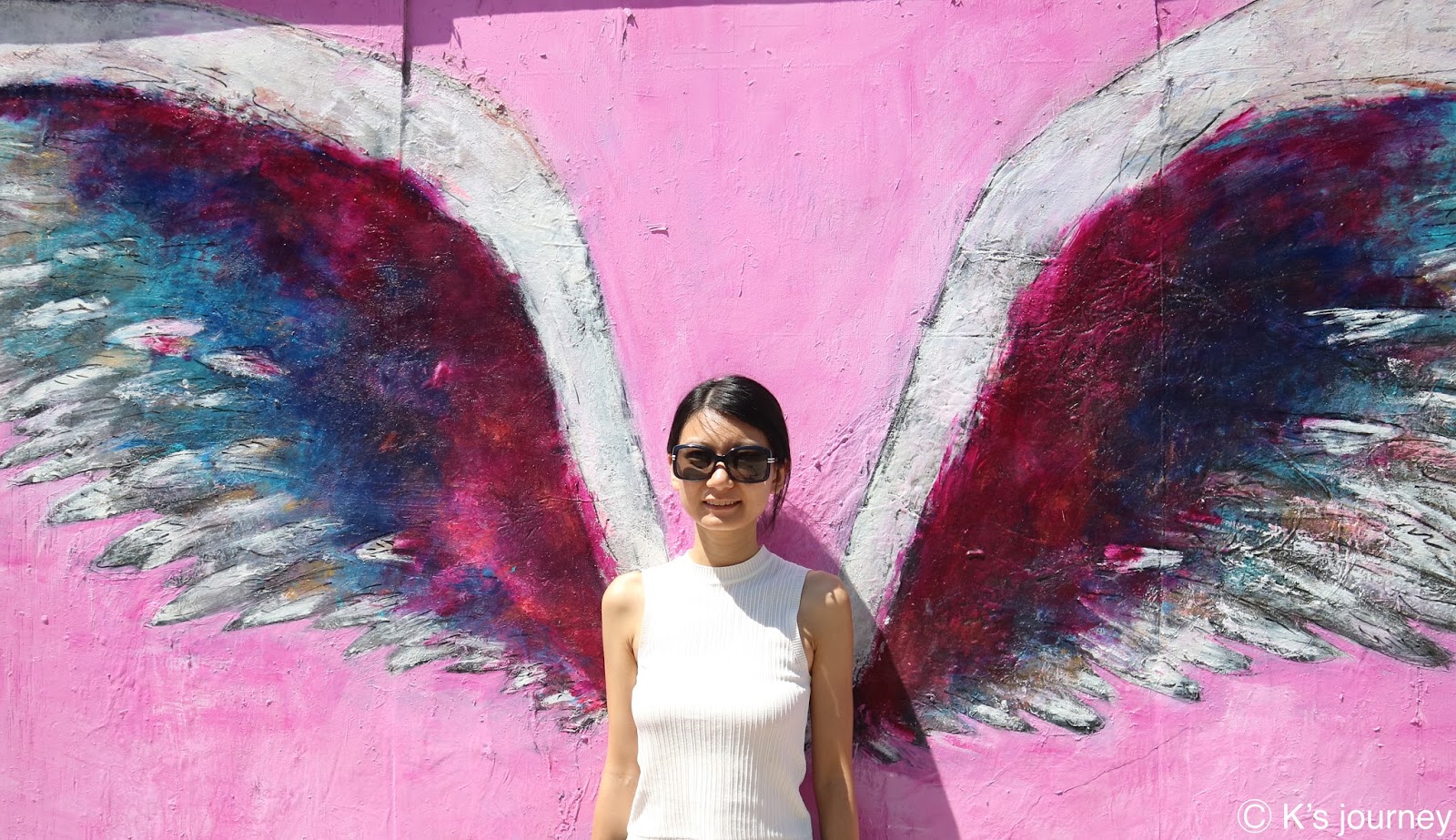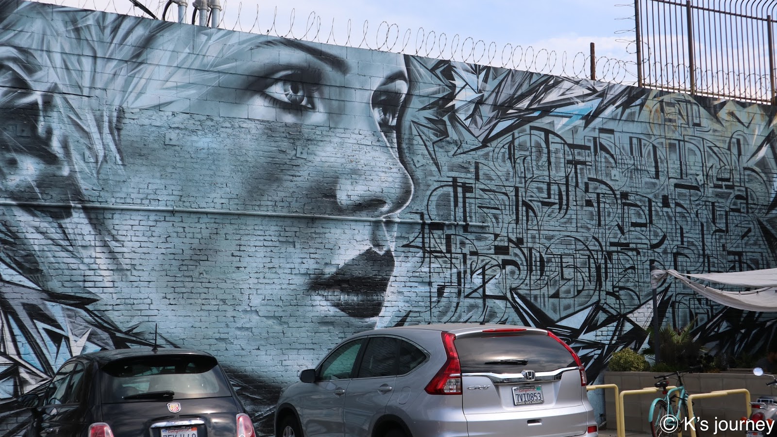 從KOBE牆往西走路不到1分鐘,就可以看到天使翅膀啦!LA知名藝術家Colette Miller從2002年開始在當地展開天使翅膀計畫,傳達愛與和平的信念。不僅在LA各處留下翅膀創作,現在墨西哥、法國、澳洲、肯亞等地也可以看見她的作品。來LA記得睜大眼睛找,這次KK就蒐集到兩對翅膀呢!裡面停車場也有好幾個有趣的塗鴉,跟大家分享我喜歡的: