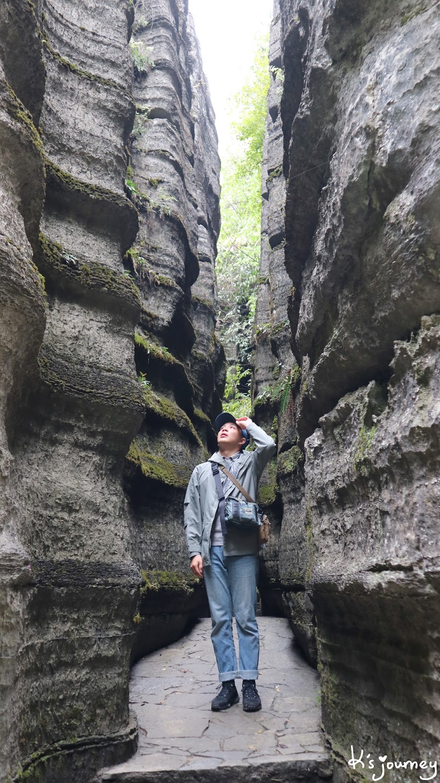 來到七星寨景區後,我們繼續步行。途中經過石芽迷宮和一線天。石芽迷宮宛如迷你版梭布垭石林,穿梭其中還挺有趣的。