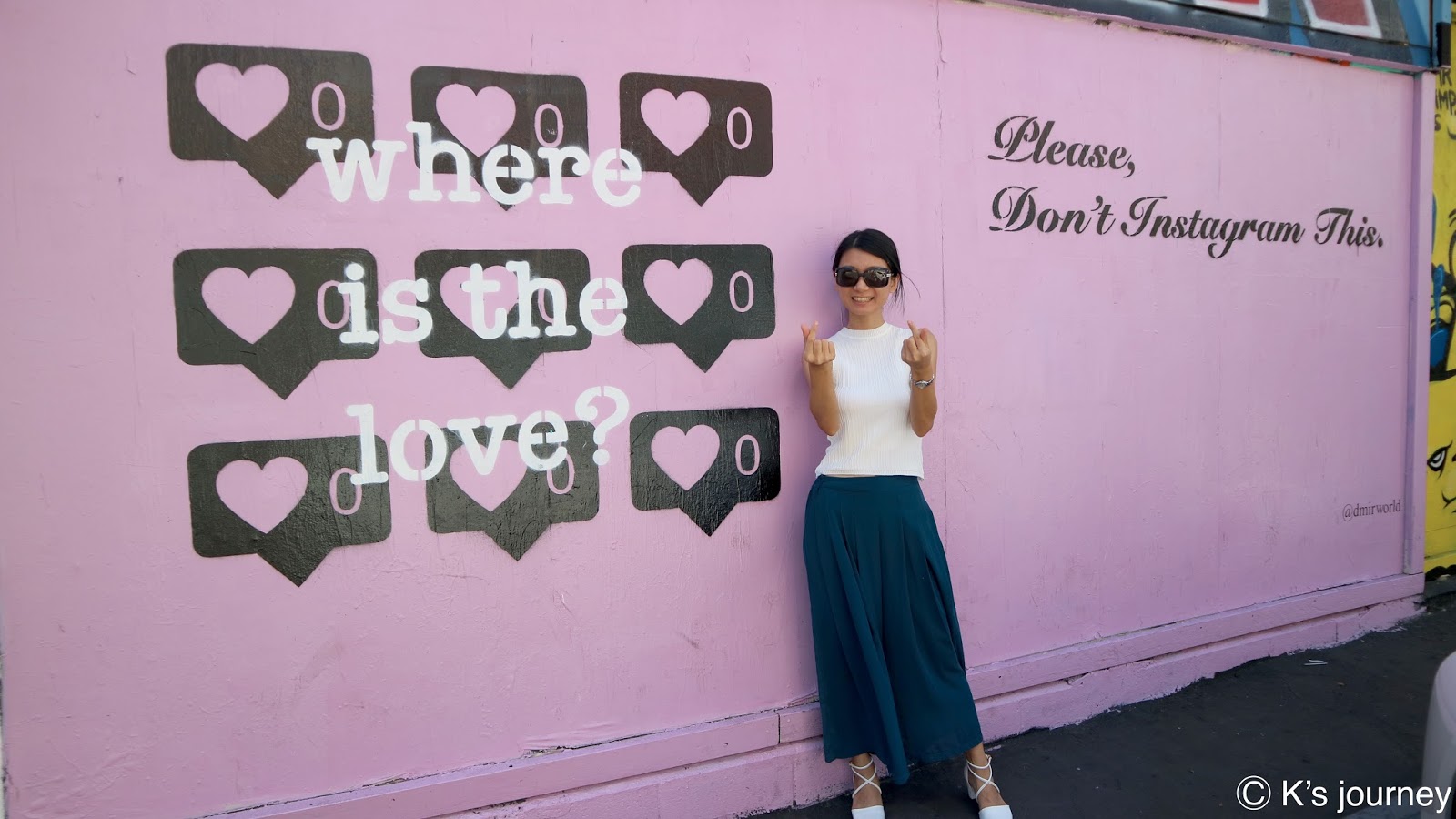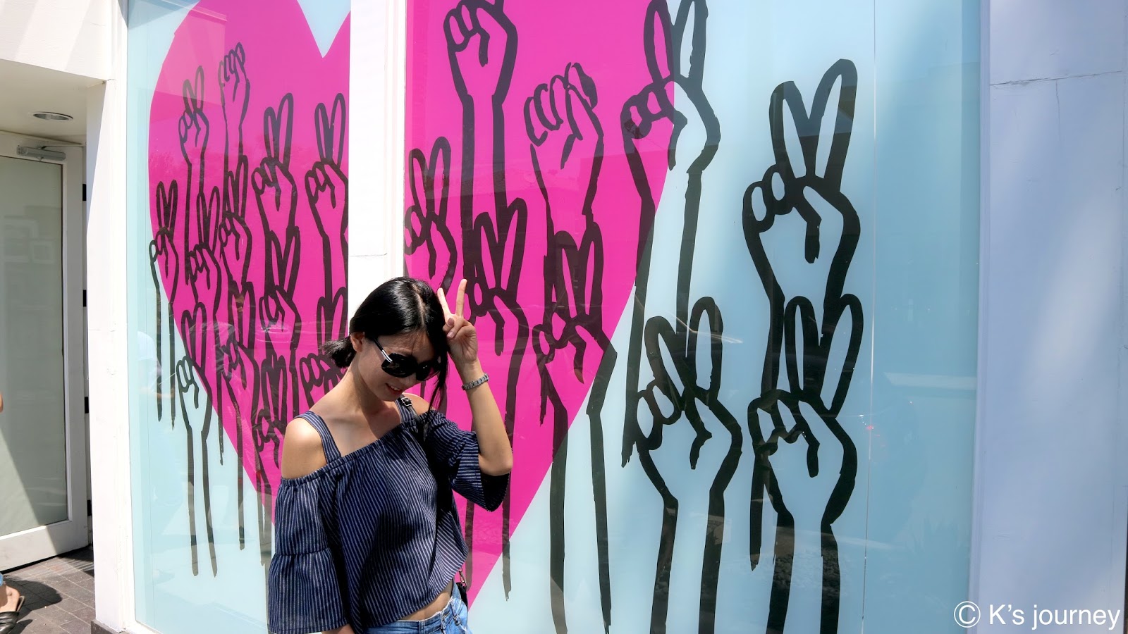 這條路算是LA的時尚區,集結各設計師名店及特色小店。各商店轉角處或停車場內都可以看到塗鴉牆。大家可以預留多一點的時間邊逛邊拍照。Pink Wall (粉紅牆)