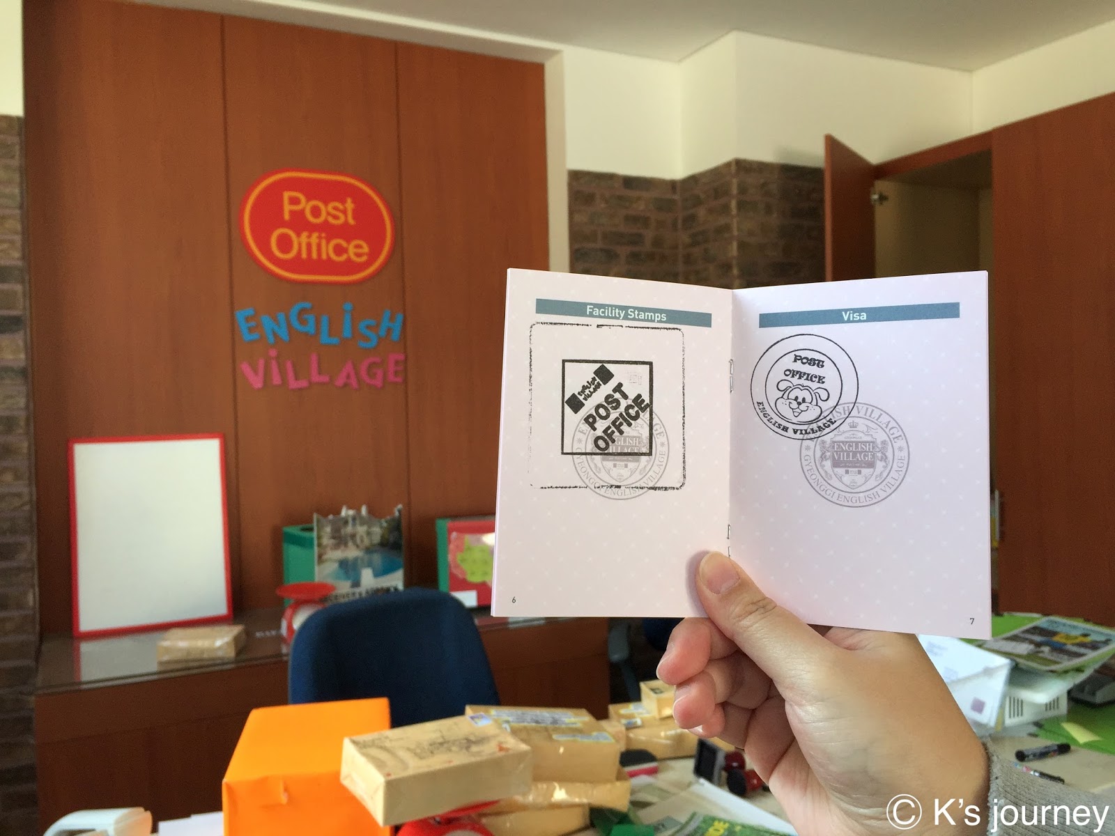看到巨石像就代表抵達英語村到囉!先在遊客中心買票,平日3000韓元,假日5000。(平日票價換算台幣約82塊,不貴吧!)入園時櫃檯人員還會給你一本護照。從這刻起,Let’s talk in English!會有工作人員扮演海關問遊客問題,模擬出國情景。原本以為三兩句就沒事了,沒想到這位工作人員超熱情,霹哩啪拉一直聊天,大概是因為我們是當天第一組客人吧!他還很熱心幫我們拍很多照片,甚至到外面跟我們說哪個角度最棒。