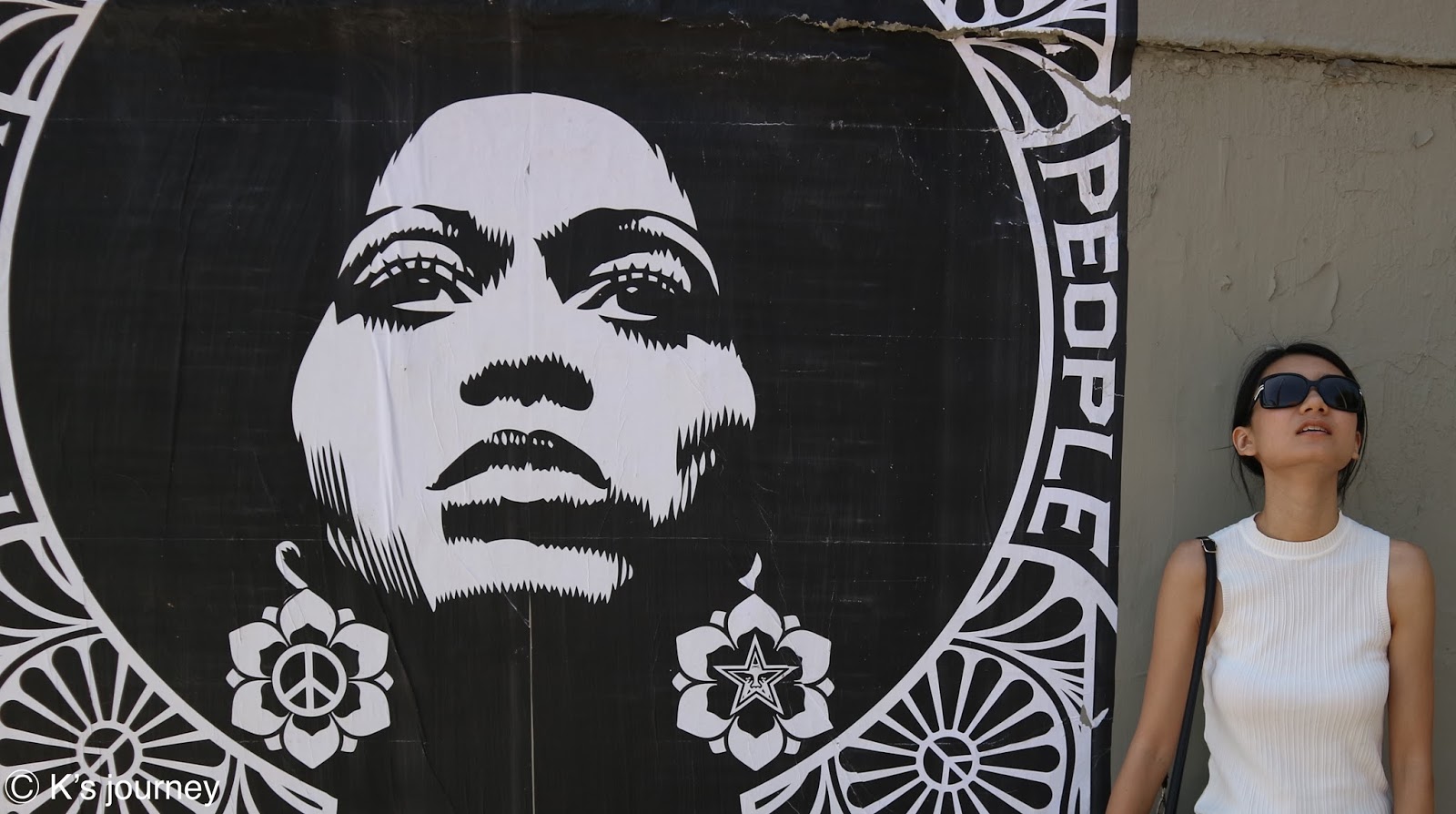 不知道該怎麼稱呼這面牆,就叫它女神吧!是我在這一區最喜歡的,因為跟其他牆面比起來,女神就是不一樣!位在一棟白色建築物的後面,拍完後記得低頭,找地上的「ILA」喔!David Choe