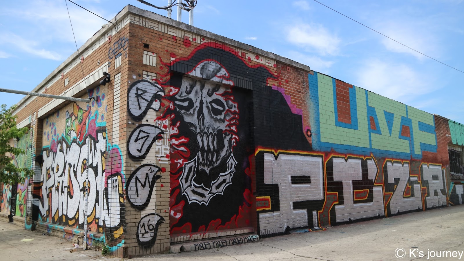 這區的作品是我們印象中很道地的那種美式塗鴉,感覺有點憤世忌俗,不知道是不是受環境影響,空氣中還飄著大麻味,走在街頭會有點害怕。在這邊沒有待太久,但還是有發現精彩的牆面!女神