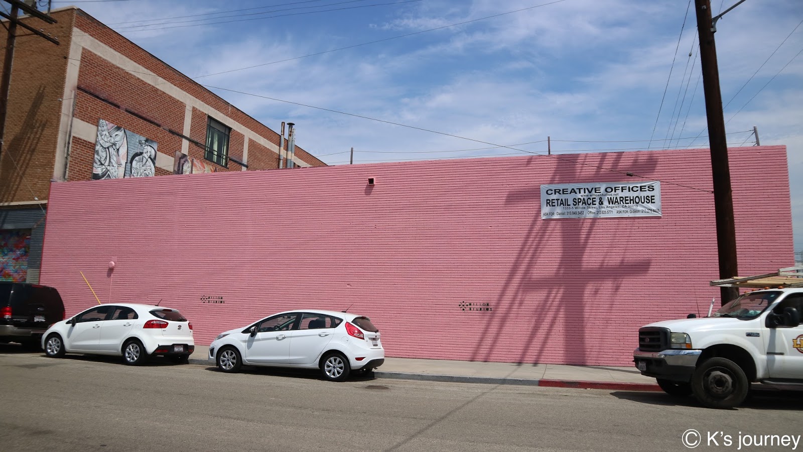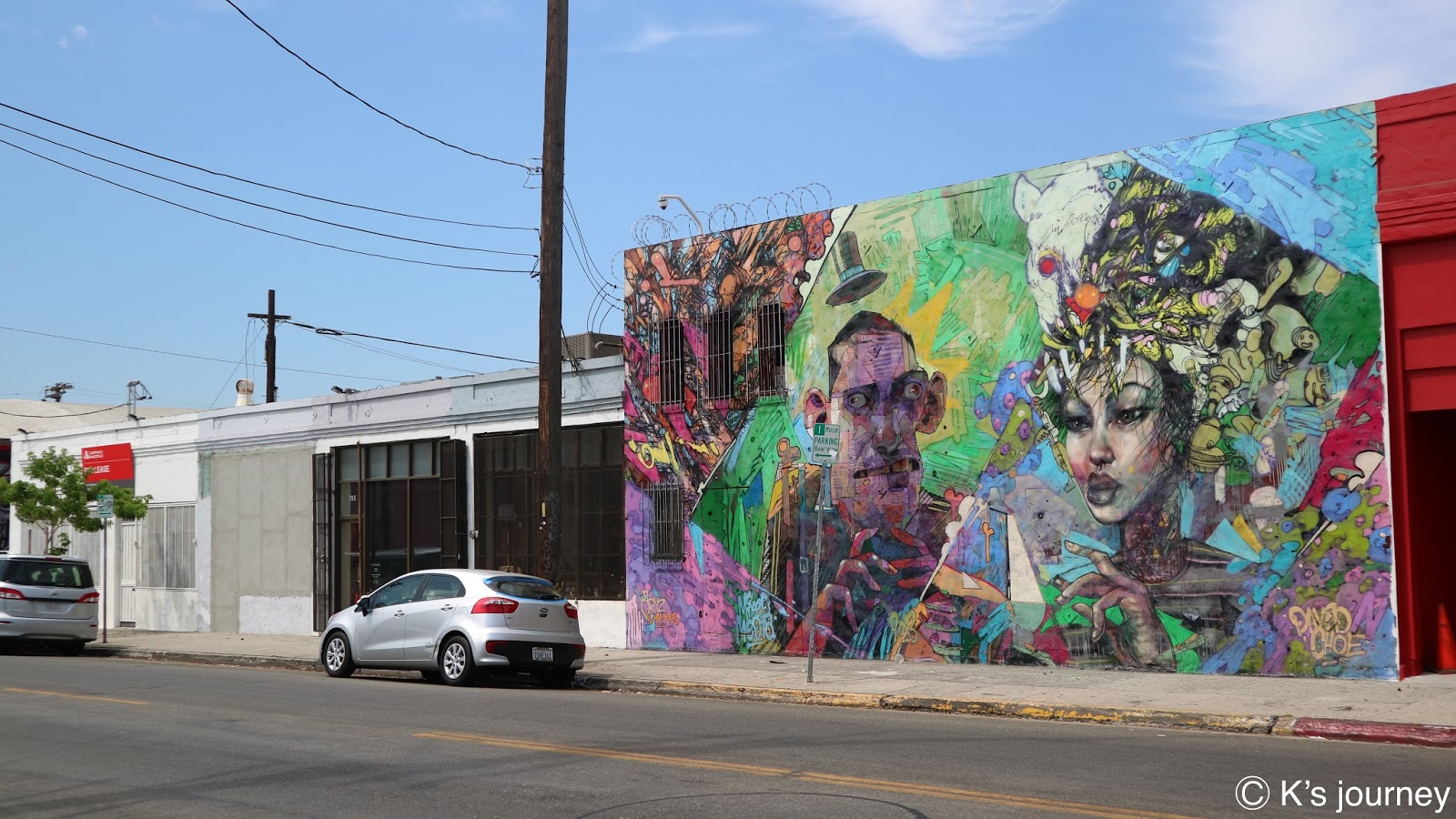 其實這附近幾乎每間店的牆面都是藝術畫作,大家邊開車邊找,看到喜歡的就可以下車拍,注意安全就好囉!藝術家筆下的世界成為我們的打卡點,大家來若沒看到KK寫的這些也沒關係,我自己也漏掉很多別人介紹的。反正,LA是個充滿驚喜的城市,好好享受找牆壁的樂趣,祝各位都能拍到滿意的照片囉!