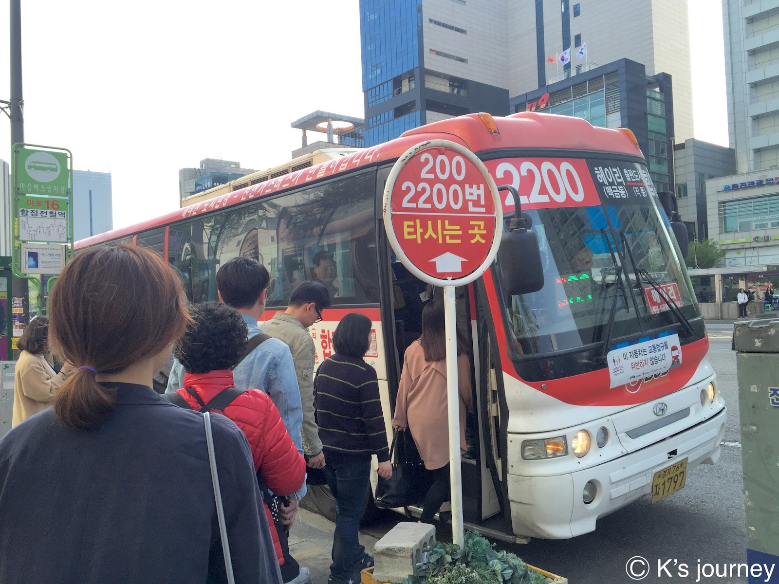 先到首爾地鐵合井站1號出口搭乘2200公車,車程時間約1小時,在파주 영어 마을(坡州英語村站)下車。