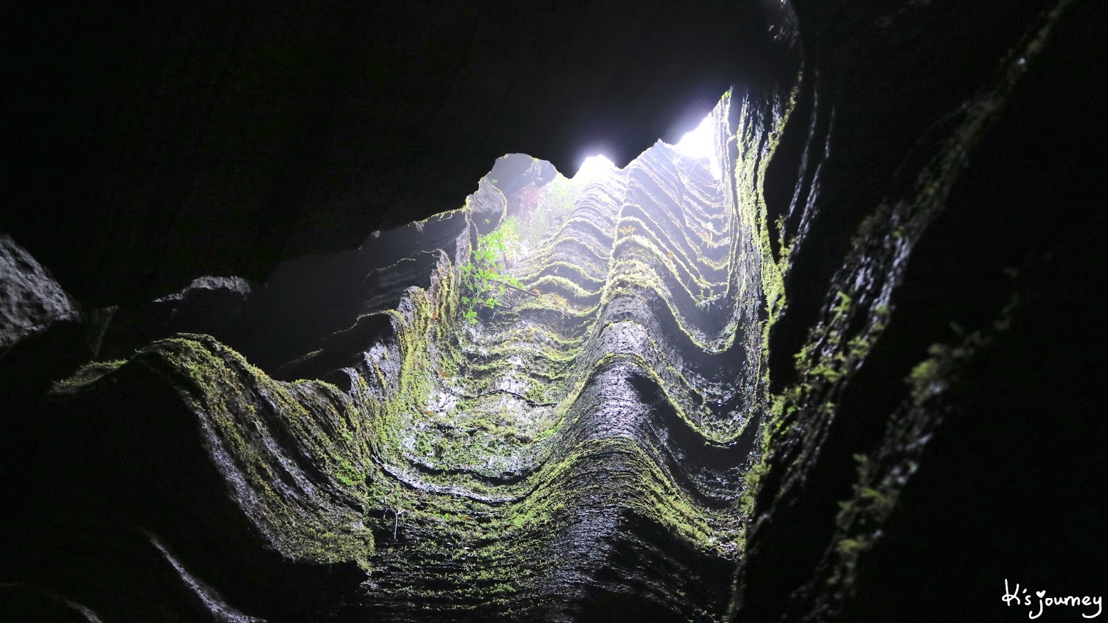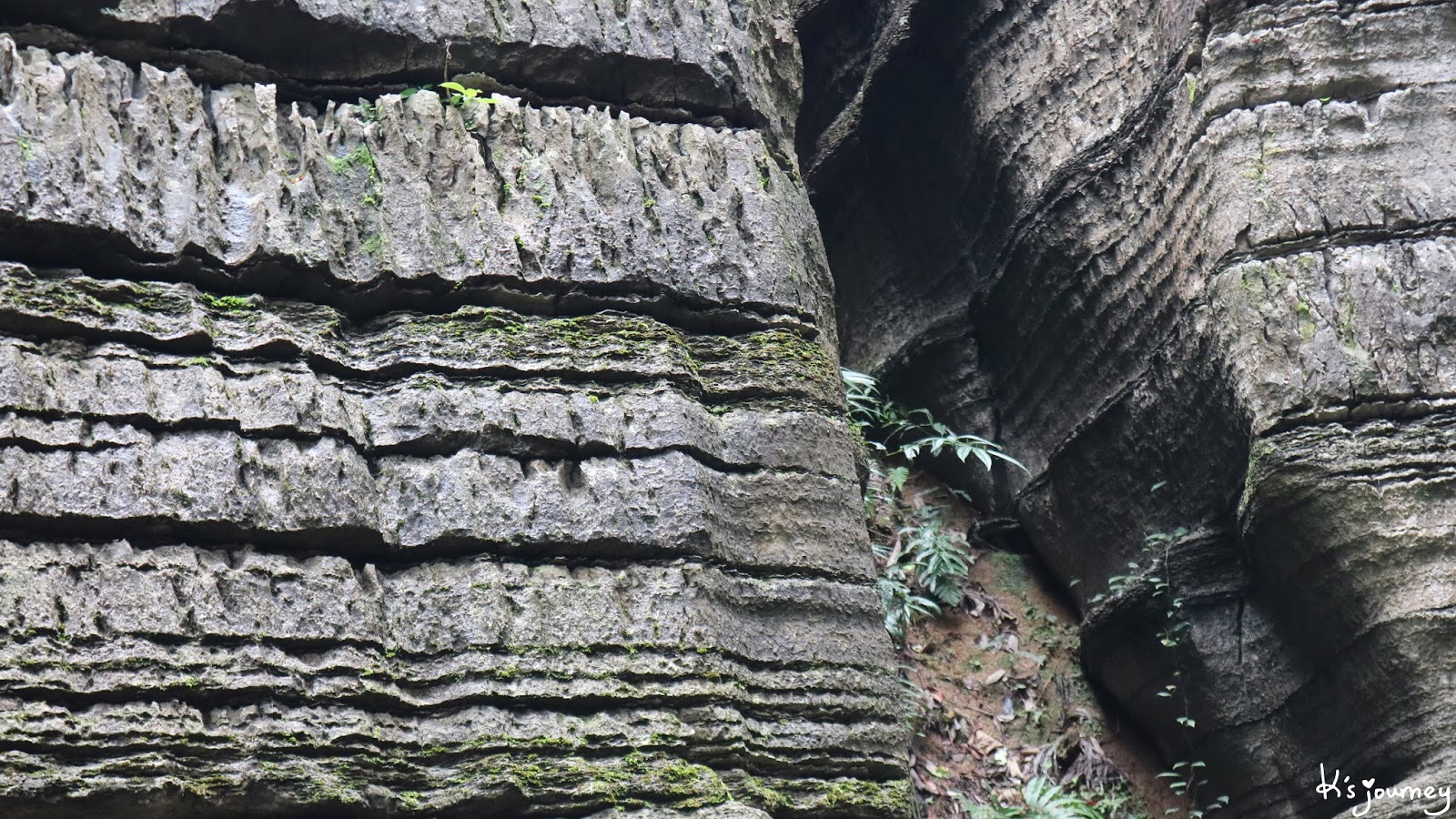 石廉。常年有地下水從地縫中的植物根部滲出,碳酸鈣沈澱,形成瀑布狀,又像門簾。