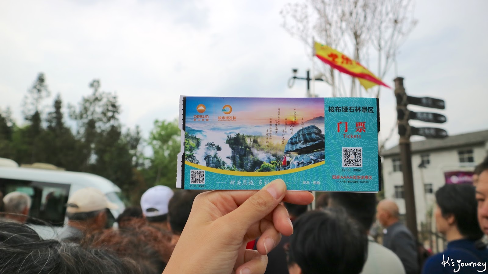 沒錯,我們要搭乘纜車前往七星寨景區。導遊說要越過兩個山頭才到用餐的地方,但我中途實在忍不住,先買了玉米補充硒元素!不過玉米粒沒有水份,好硬好難吃,不知道是否每家賣的都這樣,總之買到地雷。
