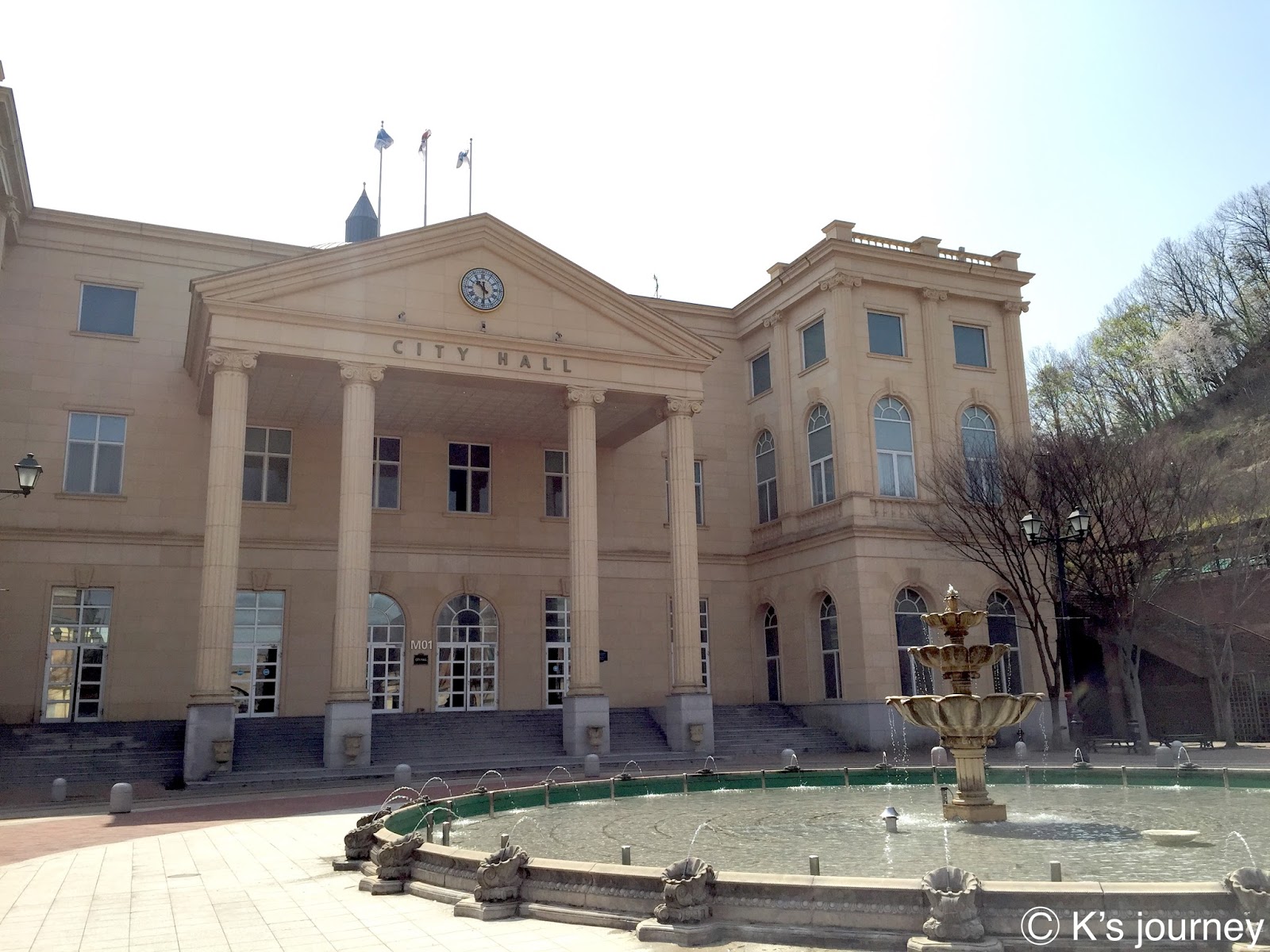 市政廳跟噴水池。