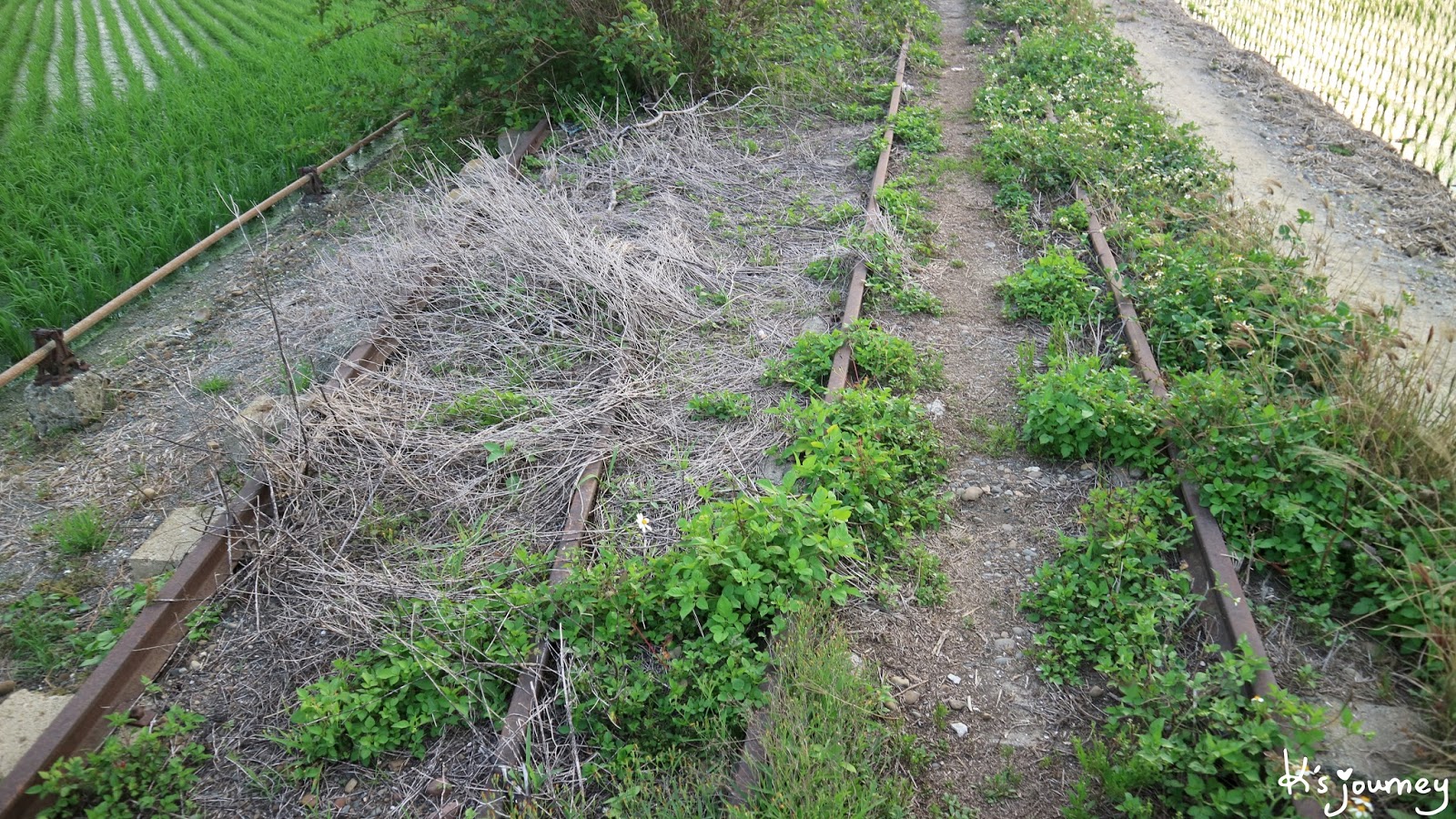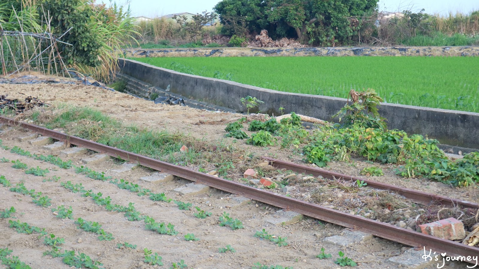 騎這條路真的有探險的感覺,一直沒看到鐵軌遺跡,騎一段時間後,就沒有柏油路了,還不小心騎進別人的田裡去,不禁開始自我懷疑,該不會全拆了吧?!但請不要放棄,繼續直行就對了