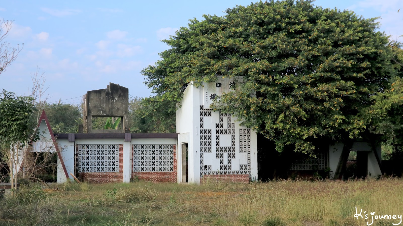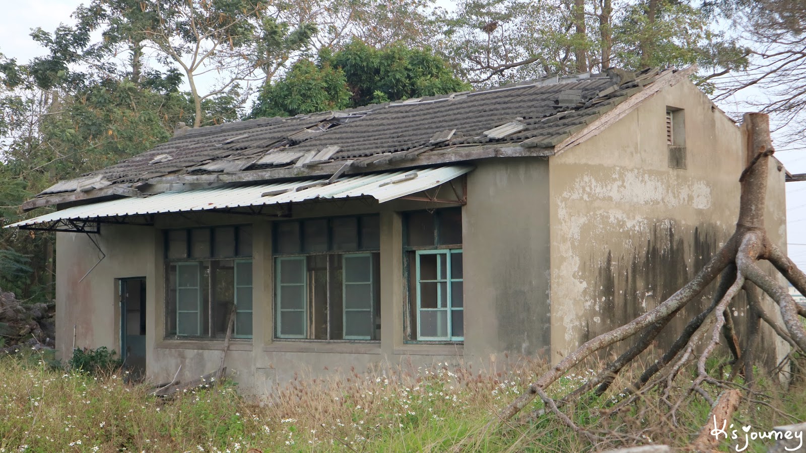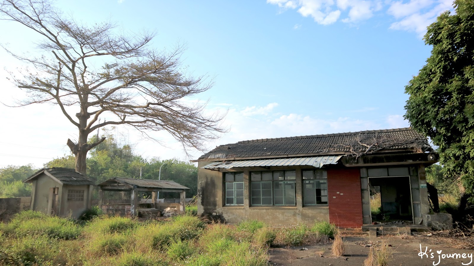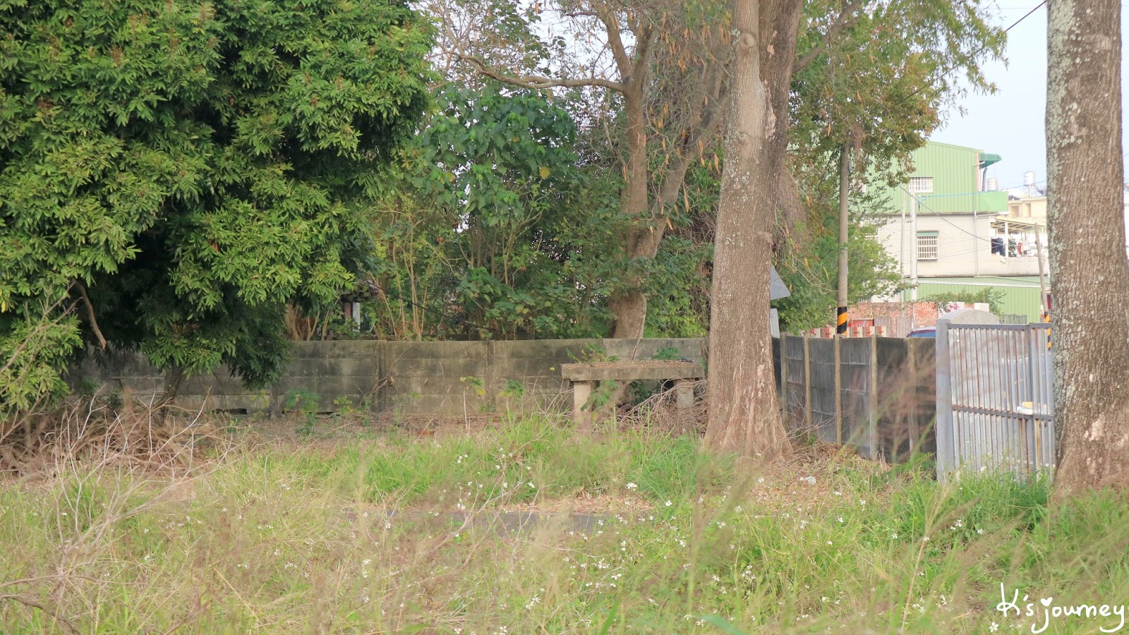按網路資訊說,溪口車站隱身在附近房舍,但我怎麼找就是都找不到,可能已經完全拆除了吧!(如果鄉親們知道確切位置,歡迎留言給我喔!)沒找到月台,倒是看到了糖廠辦公室舊址!位於中山路和仁愛街交叉口,只是這裡早已人去樓空,鐵門深鎖不能進去。房屋破舊、雜草叢生,前院角落還有個防空洞。