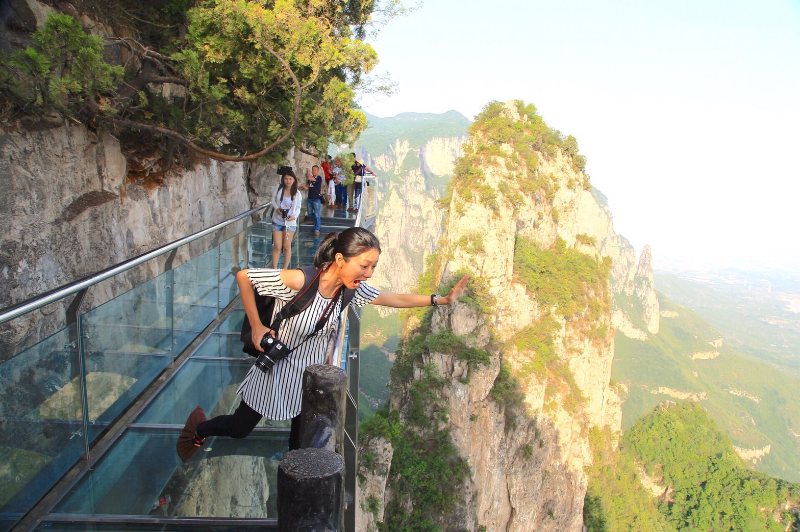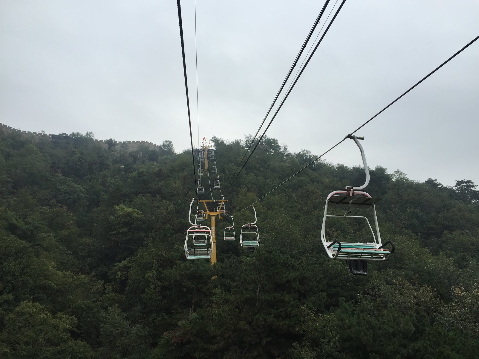 (3)索道/滑道:在6號敵樓上下車,可選擇往1號或20號方向。黑車司機大哥建議1~6號的風景比較值得看,所以我們決定走這條。只是腳底懸空的索道搭配機械聲音…應該讓不少懼高症朋友嚇出尿來吧> <不曉得這段路實際多長,但心裡感覺將近10分鐘吧!旅伴OS:我覺得度秒如年XDD。親愛的別害怕!一定要相信它很安全的!多看看旁邊的風景,不要往下看呀!