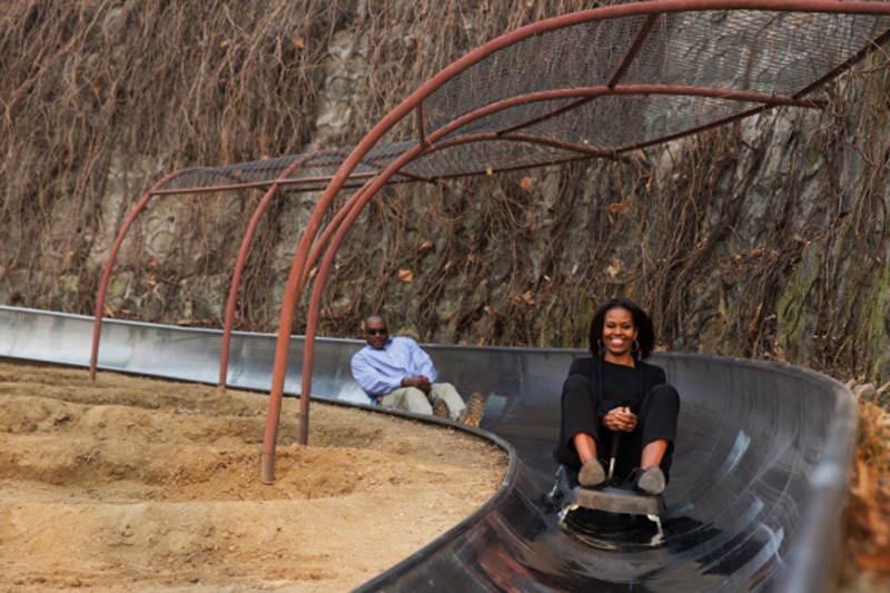 坐滑道下山,必須自行控制前進跟煞車,因為不能拍照,我請前美國第一夫人Michelle來示範,這真的超好玩的!