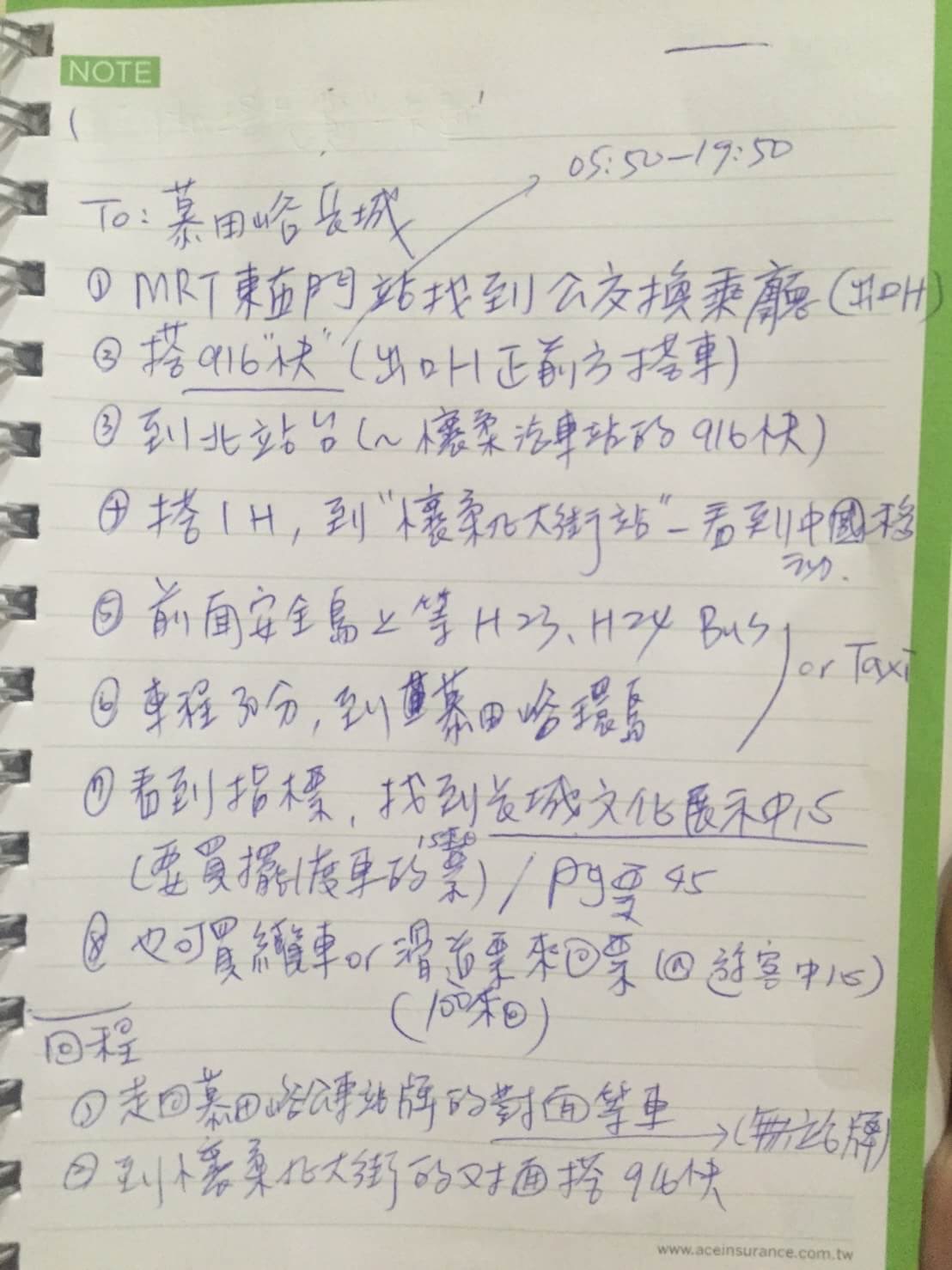 最後我們選擇方案(3),這一天就是靠這張潦草的交通筆記順利抵達目的地,哈!