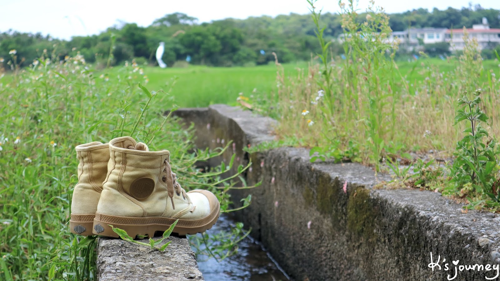 (7)第一次落水。不過人還是不要太得意忘形,學會站立後洋洋得意地往前划,結果碰到一個浪打來,失去平衡就落海了!那時教練離我超遠,在他趕來神救援前,只能告訴自己很安全,有救生衣在沒事的,但我實在太緊張了不停地在水中翻滾,心裡想著:『我一定要活下去!』喝了近10秒海水後,Andy游到了我面前。原本以為他要馬上救我上板,結果他反而先幫我留下這張落水紀念照XDD拍完後開始講起崇德海灘漁民特殊的捕魚方式,試圖讓我的情緒冷靜下來,隨後才指導我該如何上板。有了這次落水經驗,滑行時就更加小心了。雖然後來我還是喝了兩次海水,但心情確實沒那麼緊張了!